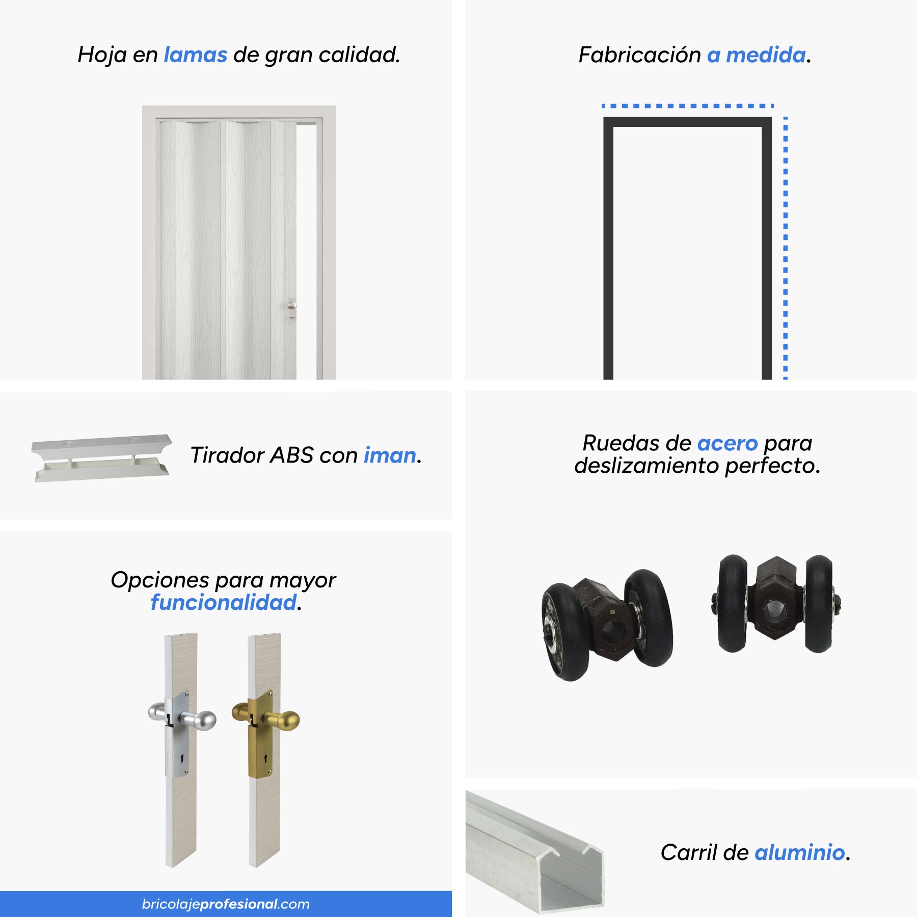 ¿Necesitas más espacio sin sacrificar el estilo? Nuestra puerta plegable PVC a medida es la solución ideal. Fabricada con PVC estabilizado al Ca-Zn, garantiza durabilidad y seguridad a largo plazo. Con su diseño compacto y lamas lisas de 10 a 13 cm, optimiza cada rincón de tu hogar. Además, su fácil instalación reversible te permite adaptarla a cualquier medida. Disponible en colores como Roble, Pino y Nogal, aporta elegancia a cualquier ambiente.